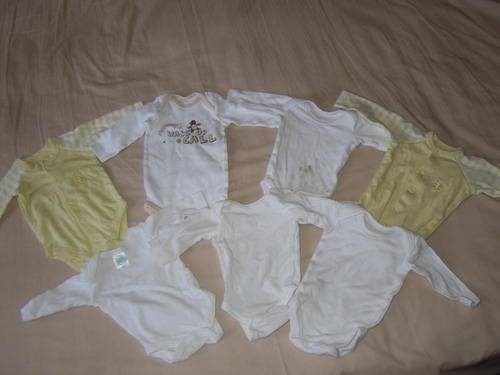 Most are in excellent condition, hardly worn... There are a couple of stains on 1 vest, but can easily be washed out with Skip or OMO. We've been using baby detergents and they are a bit useless...