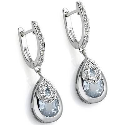 LOVELY 3.13 CARAT BLUE TOPAZ & 2 PCS WHITE DIAMOND 0.925 STERLING SILVER W/ PLATINUM EARRINGS