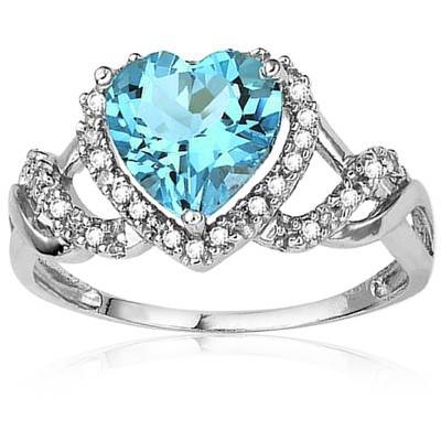 LOVELY 8MM HEART SHAPE BLUE TOPAZ AND 2 PCS DIAMOND 925 SILVER RING
