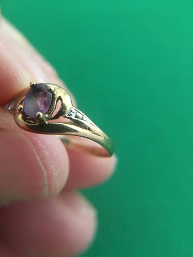 LOVELY 9 CARET GOLD RING WITH AMETHYST LADIES SIZE OF OLD 5c COIN