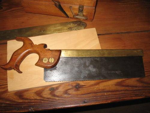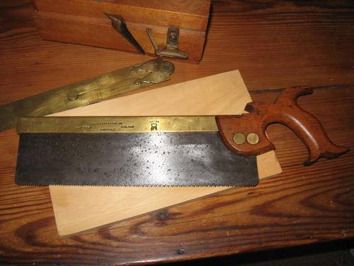 Good hand tools have lifetimes measured in decades and this is definitely one of them. This lovely old 12" (useable blade length) tenon saw was made by Abraham Ashton & Sons Ltd in Sheffield. Blade has a few areas of rust pitting which is understandable given the fact that it's been made of carbon spring steel during the course of the previous century (please see pictures). The 11 ppi blade is straight and teeth are all present and well formed, being recently set and sharpened (for interest sake 12deg rake, 20deg fleam). The handle is in very good condition, and is fixed firmly to the blade with two brass split nuts. The wood is Beech with no woodworm. Although there is a small chip missing from the bottom horn and a tiny crack in the top one, the horns are overall in excellent condition which is in itself a rarity. Makes an excellent user tool and is a pleasure to use. A few dings to the wood and brass, probably from being stored in a tool chest with other tools. This only adds to its beauty and character. Abraham Ashton, (& Sons Ltd) Sheffield seems to have been at 17½ Meadow Street from 1888 to 1893. Then at Burnt Tree Works, 17 Meadow Street from 1895 to 1951. No “previous owner” stamps.