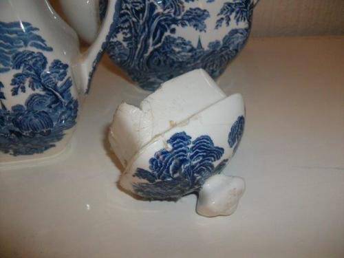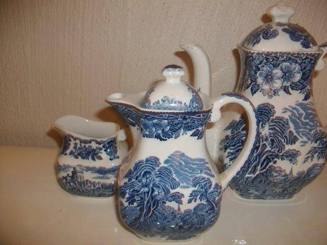 Kindly note postage will be R60 nice blue and white vintage wedwood tea set please note the lid of the tea pot is damaged as per pictures other items are in good used condition and have no damage this set will be ideal in display only , if you wish to you will have to have the lid of the pot repairedplease have a look at my other listings *free sprit*thank you