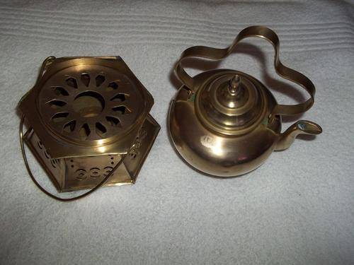 LOVELY BRASS TEAPOT WITH STAND AND BURNER (OVER 300MM HIGH)