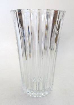 A most attractive large, heavy, clear glass vase, made in France. In excellent condition. Height 245 mm; rim diameter 147 mm; weight +-1.7 kg.