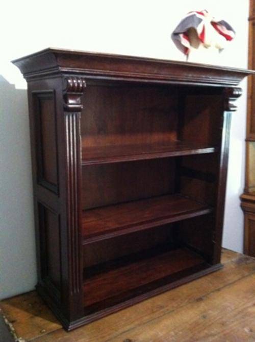 Lovely Dark Wood Shelf. In excellent condition. Would work on a wall in any room to display crockery, books, toys etc. Made in an antique style with nice detail on the edges. Please note: No longer has a door