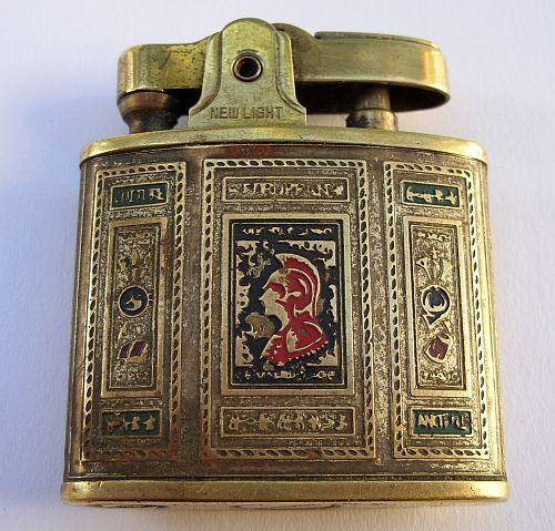 A VERY WELL DETAILED VINTAGE LIGHTER BY NEW LIGHT - OF COURSE IT HASNT BEEN USED FOR YEARS SO IF YOU WANT IT FOR PURPOSES OTHER THAN DISPLAY , YOU WILL NEED A FLINT AND FUEL .