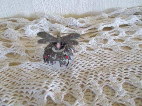 Lovely little glass perfume bottle with a metal dragon fly item in good used condition no damage noted please have a look at my other listings *free sprit*Thank you