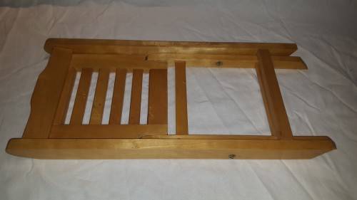 Solid Satinwood. Art Deco. 25cm x 50cm. Folds away easily. Cute. Gramps' Blue eyed girl fishing next to him.