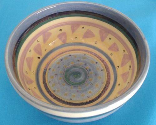 This lovely little bowl has patterned colours of lilac, blue & metallic purple (not visible in the photograph, but the metallic purple is on the inside base of the bowl)