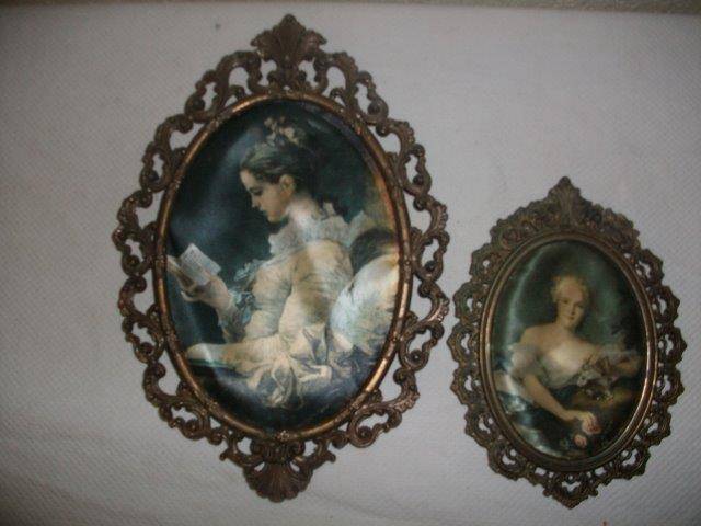 lovely framed metal vintage frames with silk scenes items the backs are a little loose and will need some tlc other wise in good used conditionplease have a look at my other listings *free sprit*thank you