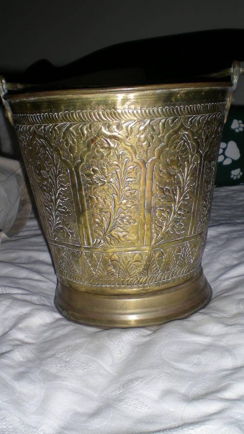 Lovely Embossed Brass handled coal bucket, needs a good clean. No Rust or holes. 26cm tall,