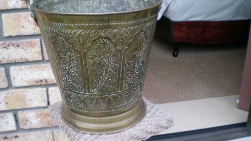 Lovely Old Brass Coal Bucket Nicely Embossed.