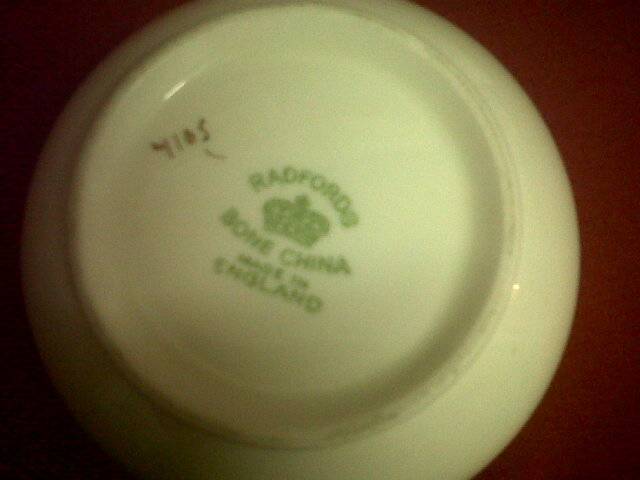 This Milk Jug and Sugar Bowl is from Samuel Radfords, China manufacturer at High str Fenton, England from 1885 till 1957. They are in very good condition, no chips or cracks.