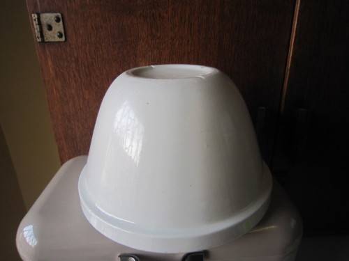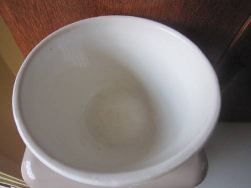 Wow really old mixing bowl, with a bit of scraping on the bottom of the bowl on the inside, other than that it is in nice condition. It does have a few spots but that is in the moulding of the bowl. 22cms long and wide, 13cms high, postage will be 85.00.