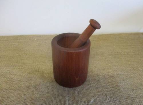 Lovely old mortar and pestle Made of one piece of solid turned wood Always useful in the kitchen In an excellent condition without any cracks or chips Clean Straight forward design and easy to clean and to keep it clean