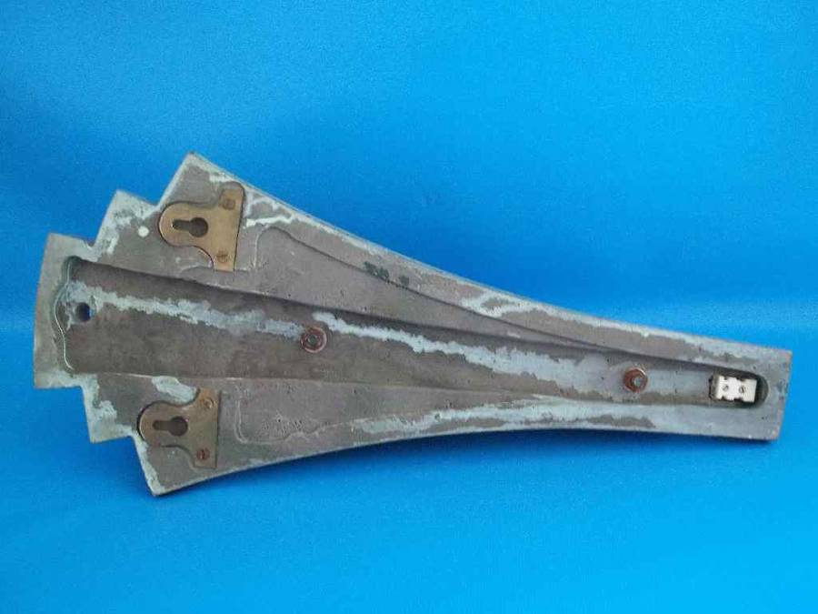 These gorgeous wall lights are made of plaster, but they need the attachments & wiring) for the globes. They are in excellent condition, & are a brighter green than they appear in the above photos.