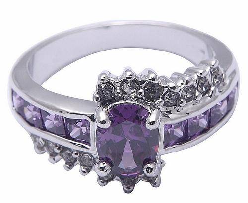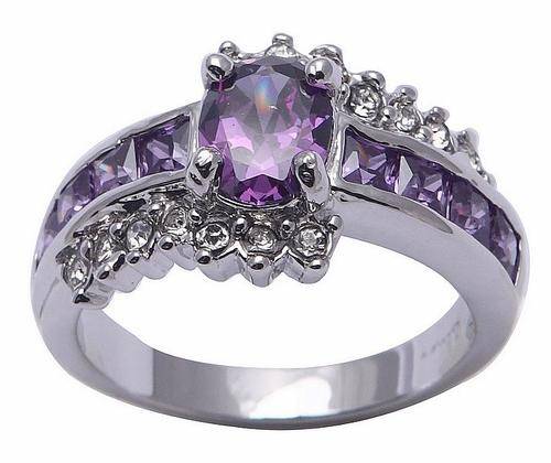 Lovely Purple Amethyst Ring 10KT White Gold Filled - Size 8