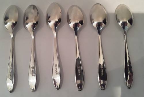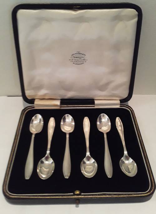 A quality sterling silver hallmarked set of coffee spoons. Sheffield, 1928 with maker's mark for Cooper Brothers and Sons Ltd.