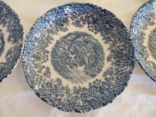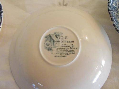 Kindly note postage is R65 via post office or R120 via courier to the door nice set of six vintage blue and white old mill scenes , johnson brothers items are in good used condition no damage noted