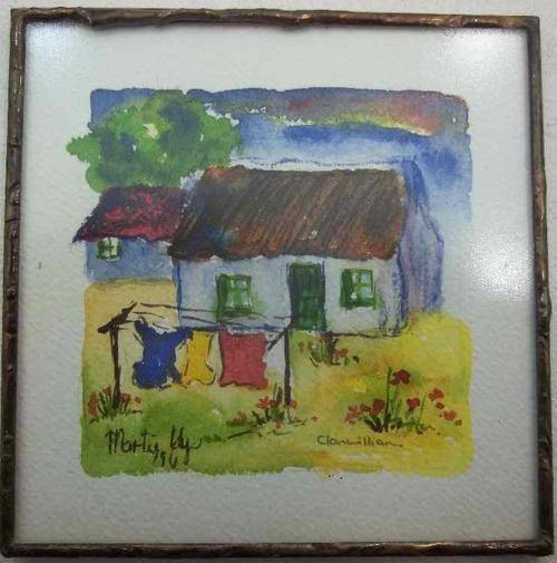 Lovely Small Original Watercolour Framed Inside Glass, Martie Uys - 10cm/10cm