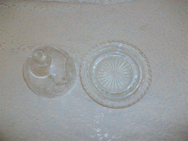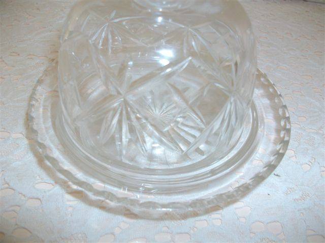 Lovely small good quailty pressed glass dome shaped butter dish or chesse dish item in good used coniditonplease have a look at my other listings *free sprit* thank you