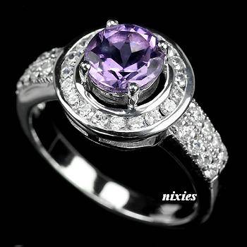 LOVELY SOLID 925 STERLING SILVER AMETHYST RING - SIZE 7(O)