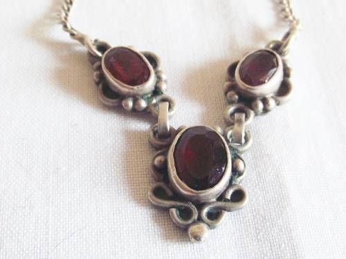 LOVELY STERLING SILVER CHAIN SET WITH GARNETS