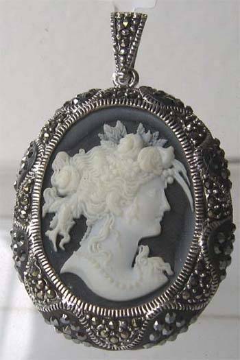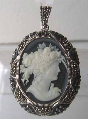 Lovely -Sterling silver , marcasite and cameo pendant .