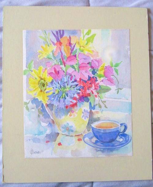 lovely still life original watercolour with flowers