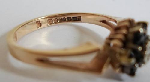 LOVELY!! VINTAGE BIRMINGHAM 9ct GOLD DIAMOND & SAPPHIRE CLUSTER RING SIZE N 2,7g VALUE R3950