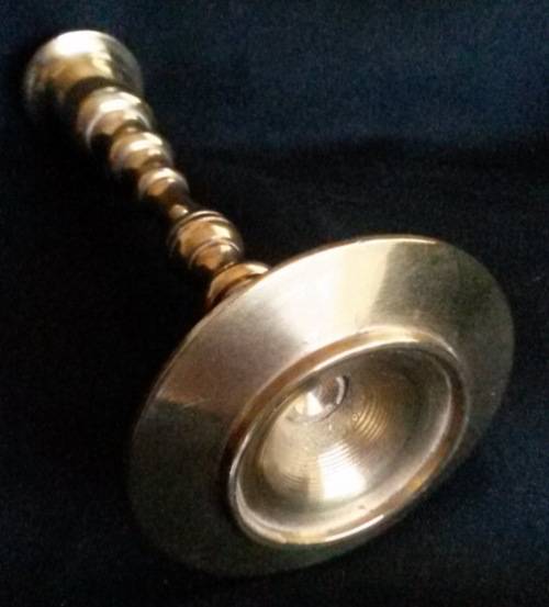 Lovely solid brass candle holder in good used condition. It has a diameter of about 8cm at the bottom. It is about 17cm high.