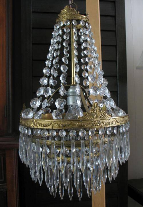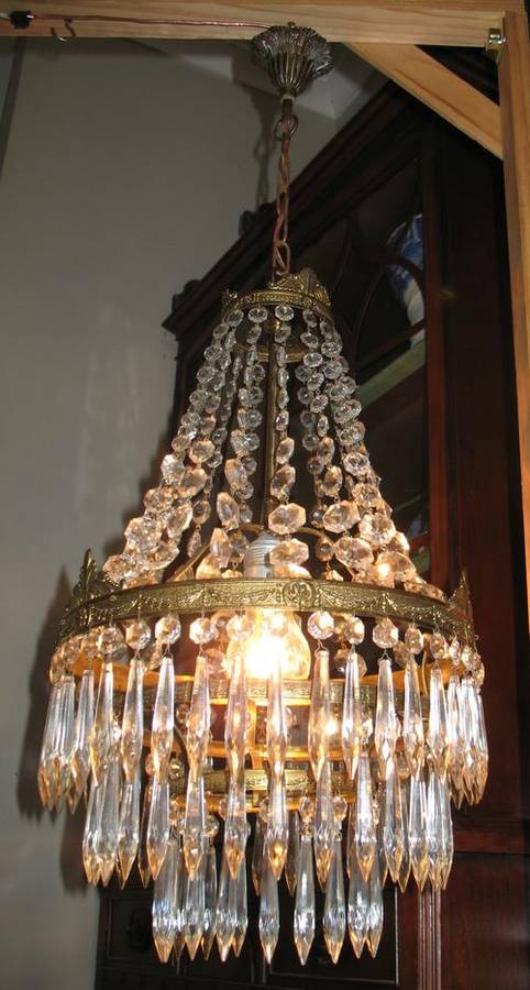 No missing crystals or parts. A single standard screw-in bulb is used here, and can be energy saving. Wiring all good.