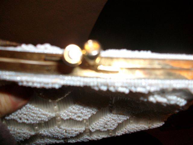 Lovely white vintage style beaded bag in good condition only missing one stone on the top where the bags opens and closes .please have a look at other listings *free sprit* thank you