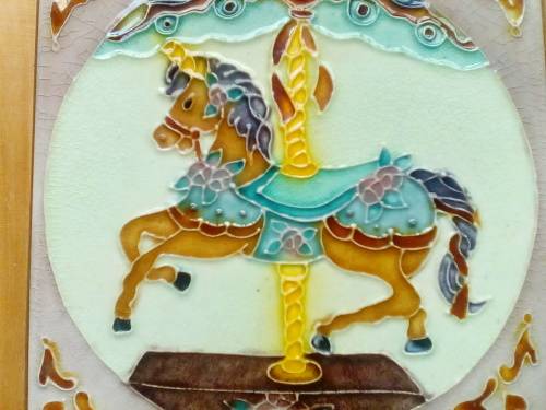 Lovely Wall Hanging Tile with Wood Border and Backing