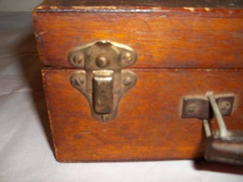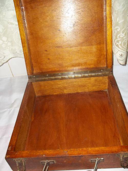 LOVELY WOODEN CASE FOR CUTLERY OR YOUR COLLECTABLES. IN VERY GOOD CONDITION. SIZE 32 X 32 X 11 CM.