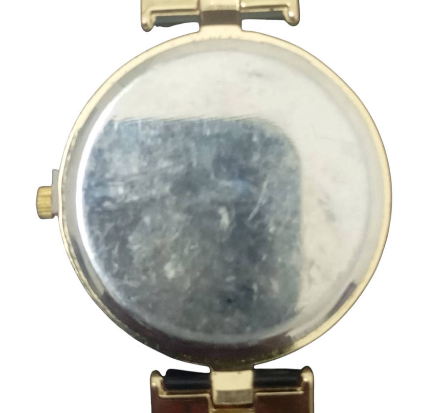 Good condition, case width is 38.40mm(excl crown), diamante bezel with gold and black bracelet fitted with diamantes in bracelet as well, watch running battery not included, images form part of the description.