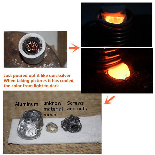 Also can be used with a graphite crucible melting gold, silver, copper, aluminum and other metals, uniform heating fast, very convenient.