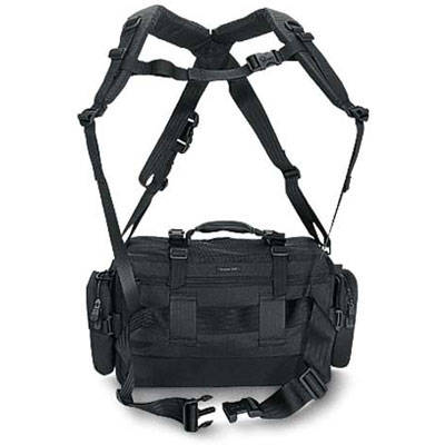 The Backpack Harness carries a fully loaded Professional AW or large Nova AW bag in an upright position.
