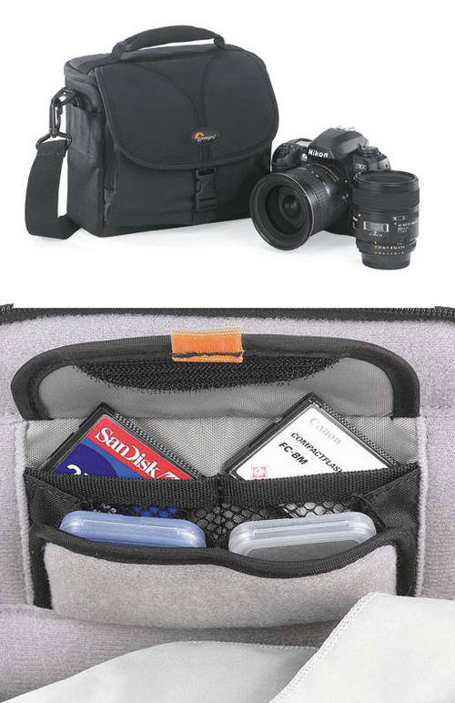 A soft, micro fiber cloth built into the main compartment cleans delicate LCD screens and protects against scratches from camera straps. Carry accessories in the roomy front pocket and stretchy side pocket, and use the SlipLock attachment tab for additional accessories.
