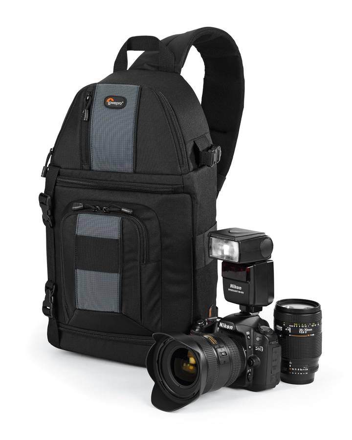 Fits a DSLR with attached standard zoom lens, 3-4 extra lenses or flashes and accessories, a compact tripod or monopod and personal items. DSLR camera models that fit the Slingshot 202 AW include: Canon EOS Rebel SL1/T3/T3i/T5, Nikon D3200, Nikon D3300, Sony Alpha A5000 and Sony Alpha A6000.