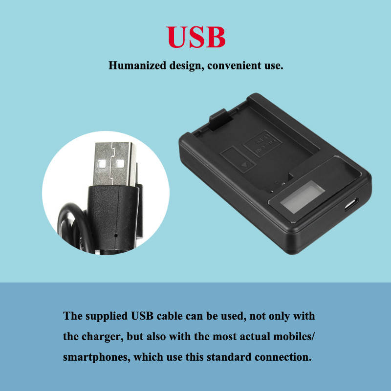 The lightweight charger allows you charge the batteries of the devices listed and saving place Simultaneously. The internal components allow an intelligent charging in order to protect the battery from overheating or overloading. The cradle also shows the charger status on the screen. Mini rapid charger fully charger. CE Safety certification. Caution:
