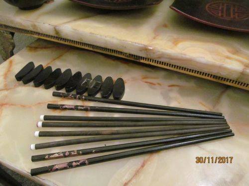1)- FOUR (4) CHOPSTICKS WITH DRAGONS PAINTED IN GOLD ADORNING EACH. 24.4cm LENGTH EACH