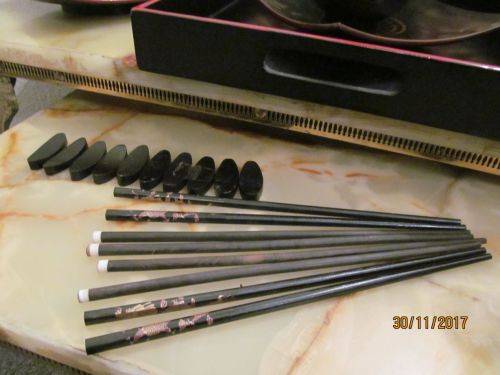 2)- FOUR (4) CHOPSTICKS EACH WITH A BEAUTIFUL BROWN AND BLACK WOOD GRAIN PATTERN AND WHITE MELAMINE HANDLE TOP WITH MOTHER-OF-PEARL. 25cm LENGTH EACH
