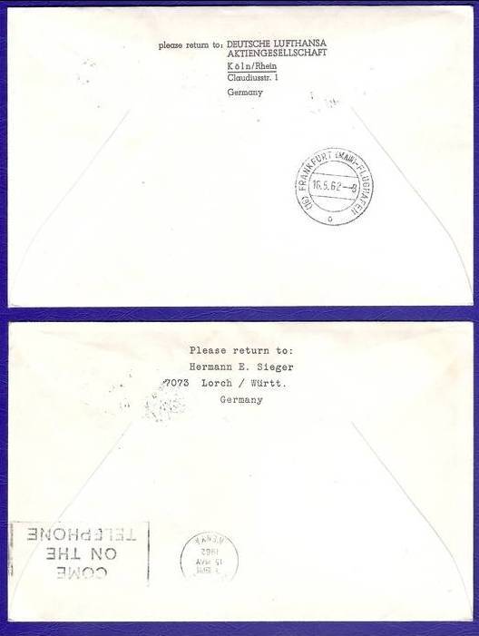 LUFTHANSA (LH 700/701)FIRST FLIGHT COVERS 1962 X2..