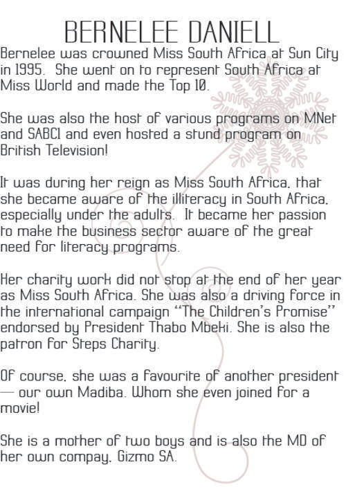 A dinner/lunch date with Miss SA 1995 BERNELEE DANIELL Plus 2 Nights stay for 2 people sharing, including dinner, bed and breakfast at the Walkersons Hotel & Spa.