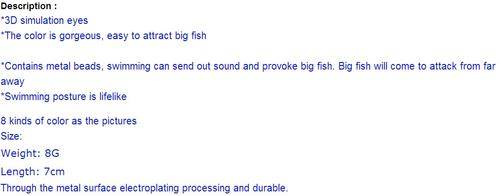 Lure Hard Minnow 7cm X 4 per lot