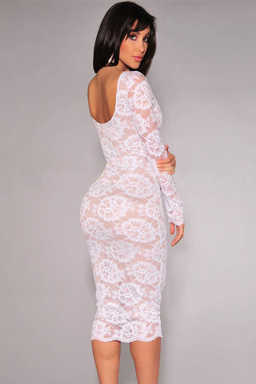 LUSCIOUS LACE LONG SLEEVE NUDE ILLUSION MIDI DRESS