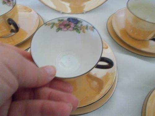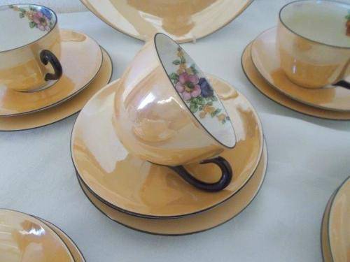 Kindly note postage is via the door only at the cost of R 170 to send nice vintage luster style orange part tea set items consist of five nice luster style tea cup trios with a pretty flower pattern on the inside of the cups the cups are in good used condition no chips or cracks or fading noted the cake plate has got some fading and wear noted as per pictures above please have a look at my other listings *free sprit*Thank you