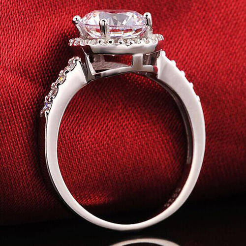 Luxurious Round Halo Engagement Ring in 925 Sterling Silver - Size 6.5 / M+