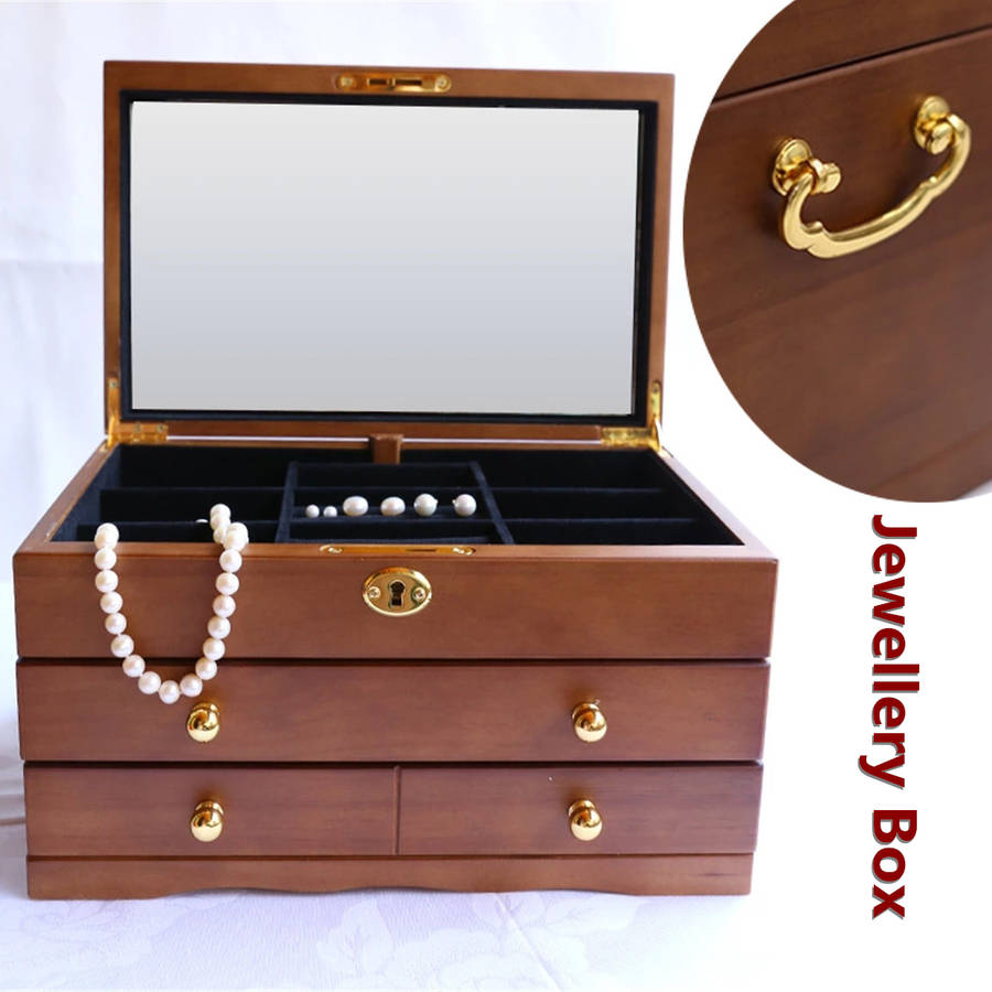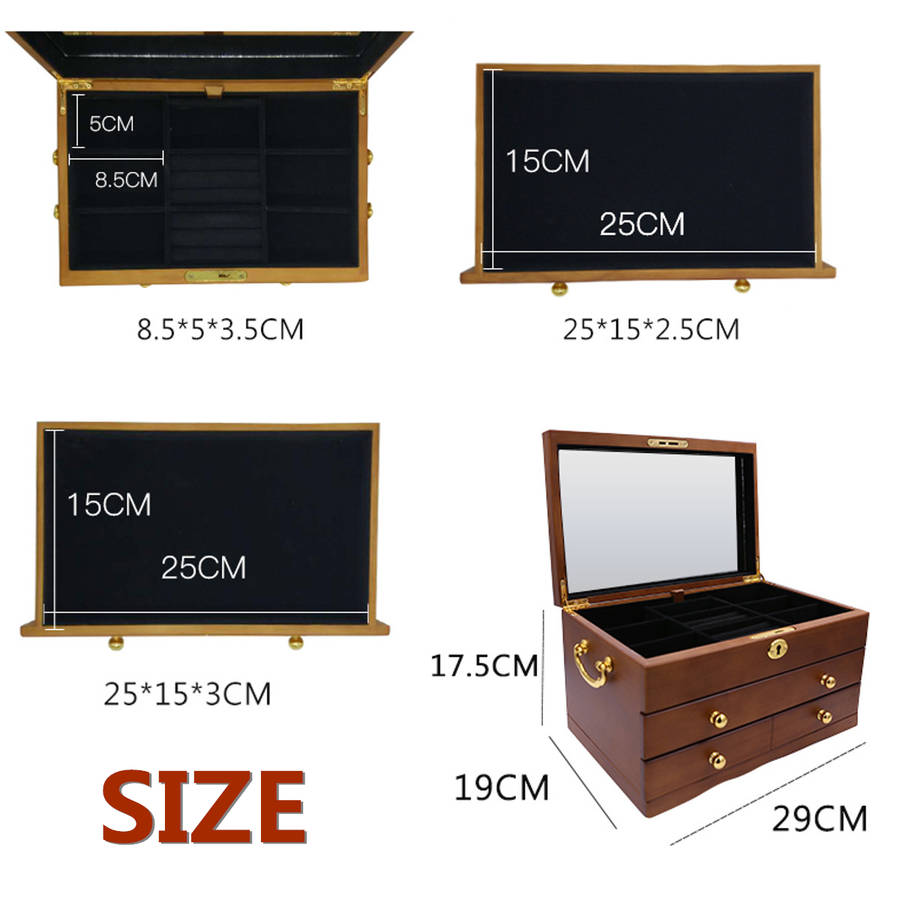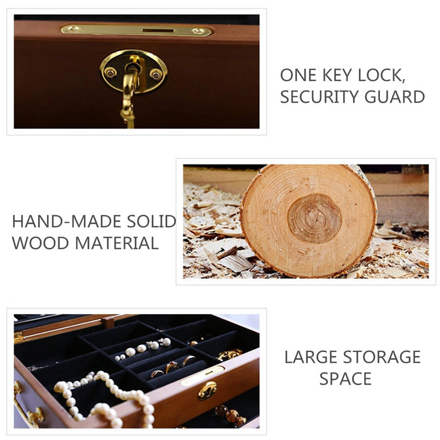 Luxury 3 Layers Wooden Jewelry Box Bracelet Necklace Ring Storage Case Display Holder